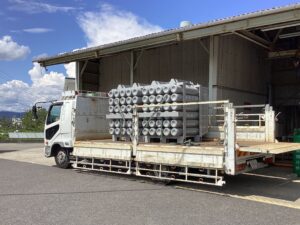 マスコールでは酸素や窒素などの高圧ガスの製造・販売を行い、お客様へ「ガスボンベ」をお届けしています。通常、ガスボンベは1回につき1本〜数十本程度を配送しますが、実際に使用される際は1本ずつ交換して利用されます。