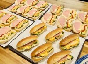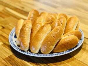 パンを山積みにしていると